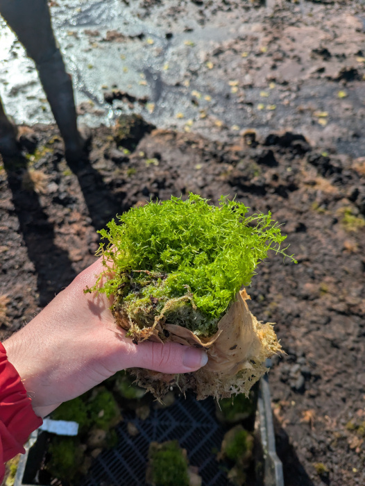 Picture was taken on 6/3/26 on a Bogland in Derreighter Organic Farm, Oughterard. A picture of one of the Sphagnum Moss plugs that were being planted.