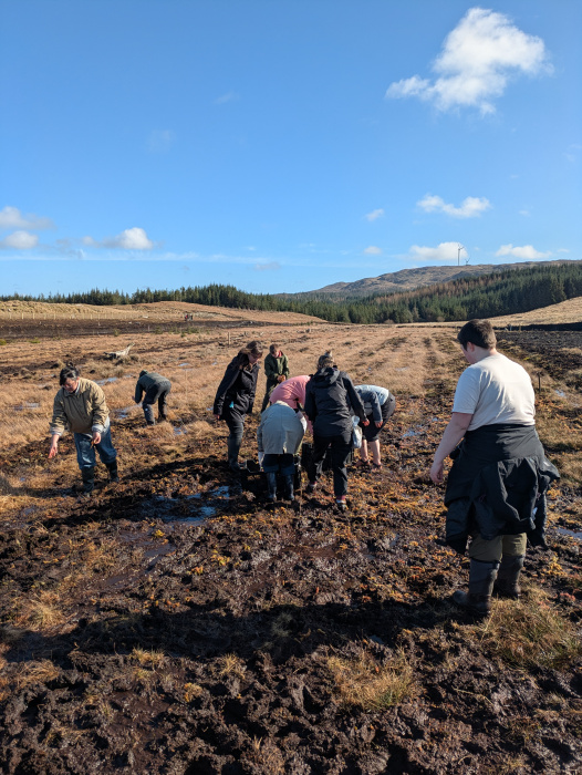 Picture was taken on 6/3/26 on a Bogland in Derreighter Organic Farm, Oughterard. A picture of the group transplanting Sphagnum Moss by hand.