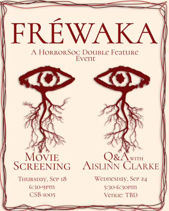 This Thursday (Sep 18), we are watching the Irish horror film - Fréwaka, and on Wednesday next week (Sep 24), you'll be able to attend a virtual Q&A with the film's director, Aislinn Clarkle. Keep an eye on our socials for the venue of the Wednesday event. We hope to see you there!