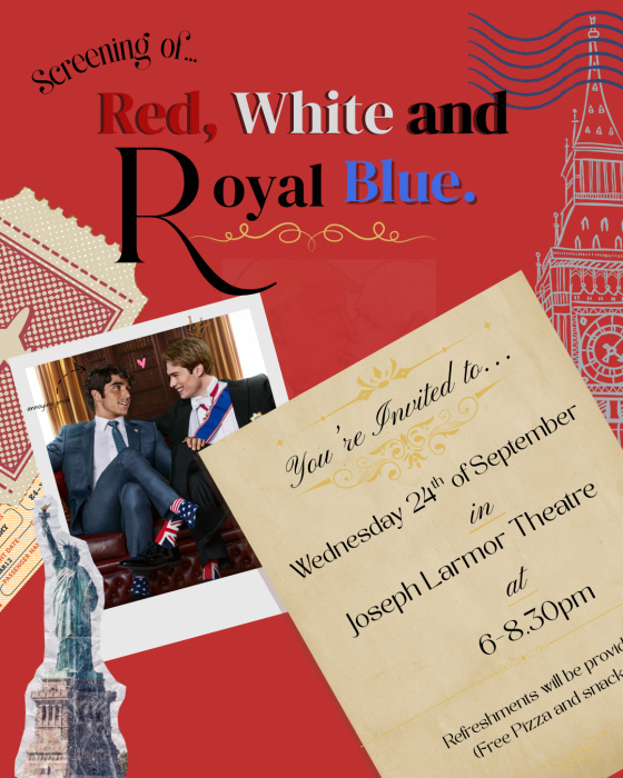 The society's first movie night (of many hopefully!) and we're watching the book-turned-movie, 'Red, White and Royal Blue'! Come watch colonial nepo babies go from enemies to lovers before your very eyes with free pizza in hand!