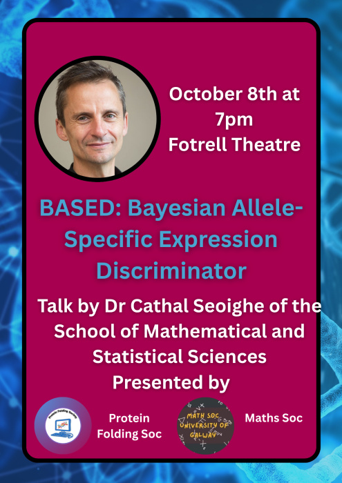 We will be hosting a talk with Dr Cathal Seoighe titled "BASED: Bayesian Allele-Specific Expression Discriminator" about his exciting research. Make sure to come along to learn something new, meet like-minded people, and maybe have some pizza!