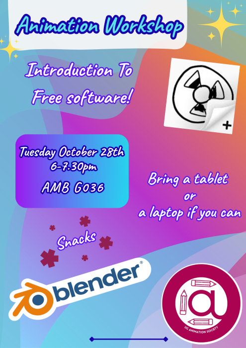 Join Animation Society as we watch movies, discuss animation, and do workshops on different types of animation. There is no experience required.